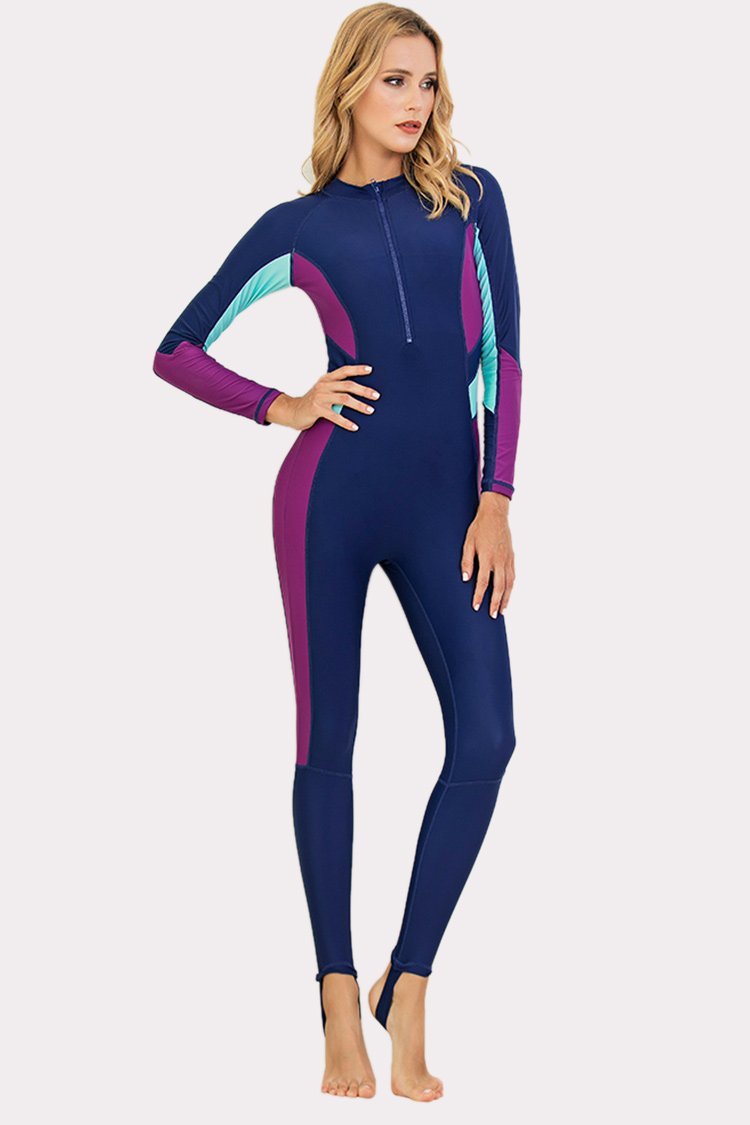 Die Farbe des halben Reiß verschlussesBlock ein StückSurfing Neopren anzug aus weichem und Premium Lycra Spandex. Das Material macht diesen Ganzkörper-Frauen-Neopren anzug beim Anziehen elastischer, bequemer und weicher. Das dicke Material design kann Sie im Wasser wärmer halten. Dieser Badeanzug ist als lange Ärmel und lange Hosen konzipiert, die nicht nur die Sonnenschutz funktion haben und Sie vor Sonnenbrand schützen, sondern auch Ihren Körper effektiv warm halten können.