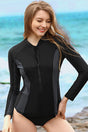 Damen Rashguard Badeanzug Reißverschluss Front Sonnenschutz Schwimmhemd UPF 50+