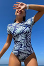 Neuer Peachtan Blattdruck einteiliger Badeanzug Backless UPF50+ Hautausschlag Guard