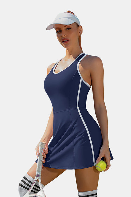 Women's Tennis Dress with Built-in Shorts Scalloped Pink Golf Dress Racerback Athletic Skirts - XS is backordered and will ship as soon as it is back in stock.