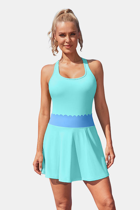 $48.79$98.88Unit price /UnavailableWomen's Tennis Dress with Built-in Shorts Scalloped Aqua Golf Dress Racerback Athletic Skirts