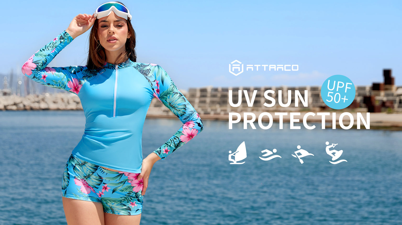 . It Is a Must-Have 2 Piece Swimsuit For Summer. The high-quality, quick-drying fabric will keep you comfortable all day long, while the UPF50+ protection will keep your skin safe from the sun's harmful rays. Plus, the two-piece design allows for easy movement, and the high neck and long sleeves provide excellent coverage.