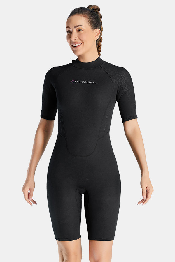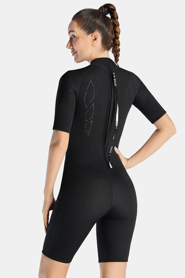 Cold-Proof And Warm One-Piece Short Sleeve 3MM Women's Black Wetsuit