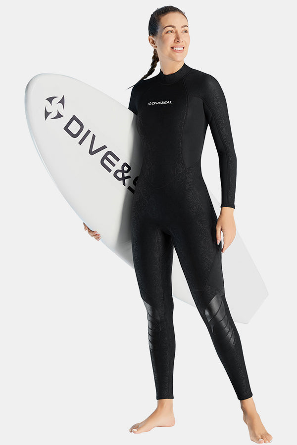 Women's Long Sleeve One-Piece 3MM Black Wetsuit UPF 50+