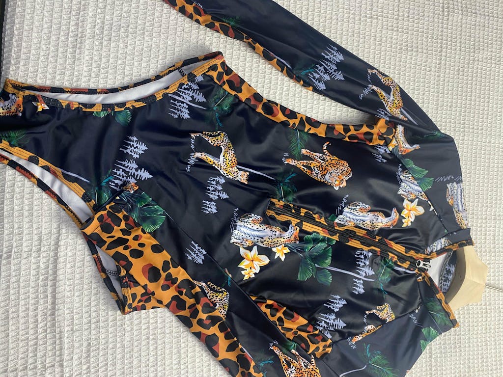 Clearance | Leopard Print Long Sleeve Half Zip UPF50+ Rash Guard - S is backordered and will ship as soon as it is back in stock.