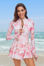 One-Piece Long Sleeve UPF50+ Ruffle Skirt Swim Suit