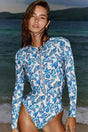 Adelgazamiento gris manga larga cremallera triángulo traje de baño una pieza upf50 Prendas térmicas