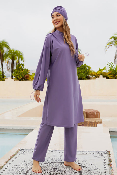 These unique long-sleeved trousers two-piece swimsuit is both stylish and functional. Made from a super-stretchy fabric that supports dynamic movement, high elasticity helps ensure a great fit. it is a must-have piece for surfing, swimming, and other outdoor sports activities.