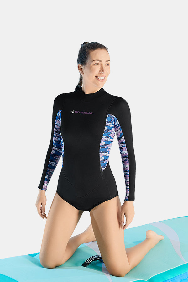Coussin de tissure pour femmes à manches longues à manches longues imprimées en une seule pièce 2 mm - XS est en rupture de stock et sera expédié dès qu’il sera de retour en stock.