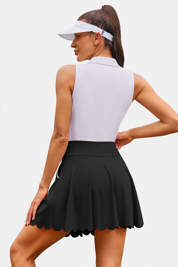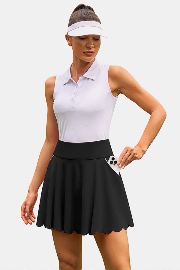 Cette élégante jupe de tennis de sport plissée taille haute de forme trapèze présente un design chic et fluide qui met en valeur votre look actif et sportif. Le short en maille intégré offre une couverture supplémentaire. La silhouette taille haute offre un excellent soutien du ventre et assure une couverture suffisante lorsque vous vous penchez ou vous étirez, tout en conservant une apparence à la mode. Fabriqué à partir d'un tissu de qualité supérieure, il présente des propriétés d'évacuation de l'humidité, extensibles, respirantes et non transparentes. Se marie parfaitement avec des soutiens-gorge de sport, des débardeurs ou des polos de golf.