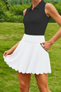 This scalloped athletic skirt is a standout piece. Its unique design and exceptional comfort make it a must-have. The fitted shorts provide excellent coverage and breathability, even in the most sweltering summer temperatures. The skirt washes well and boasts quality comparable to well-known athletic brands. I highly recommend it!
