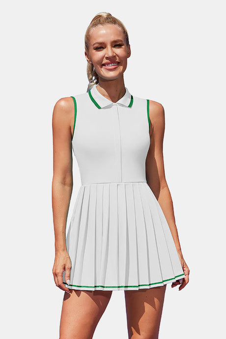 Robes polo de tennis côtelées pour femmes, demi-fermeture éclair, robe d'entraînement plissée Aqua Golf avec short et soutien-gorge intégrés