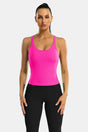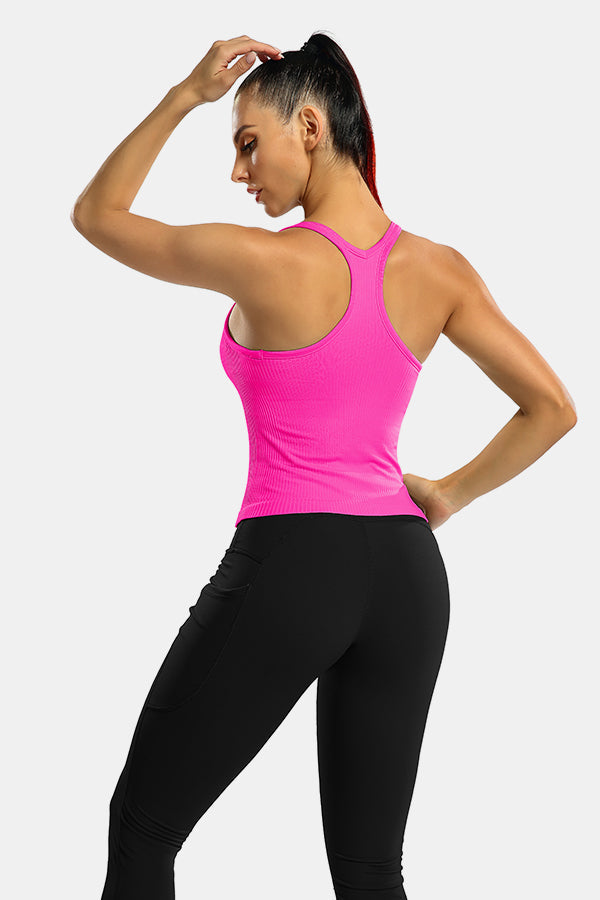 Neon Pink Scoop Neck Racerback Waist Length Ribbed Workout Crop Tops Tank Top