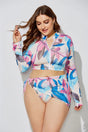 Tropical Leaft Print V Col Col Two Piece Rash Guard