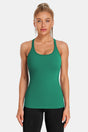 Green Racerback Scoop Neck Athletic Top Hip Length Ribbed Workout Tank Tops