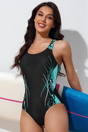 Attraco Women's Blue Printing Athletic Athletic competitivo One Piece Swimsuit