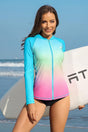 Camicia da bagno a manica lunga con cerniera a gradiente di colore UPF50 Rash Guard