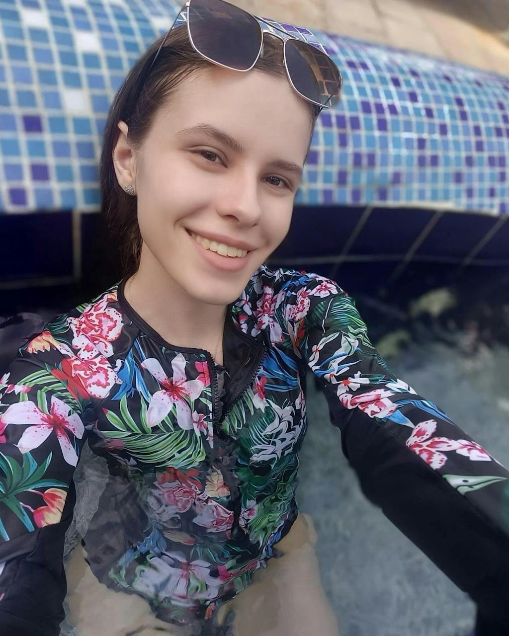 Floral Print Long Sleeve Front Zip UPF50+ Rash Guard - S is backordered and will ship as soon as it is back in stock.