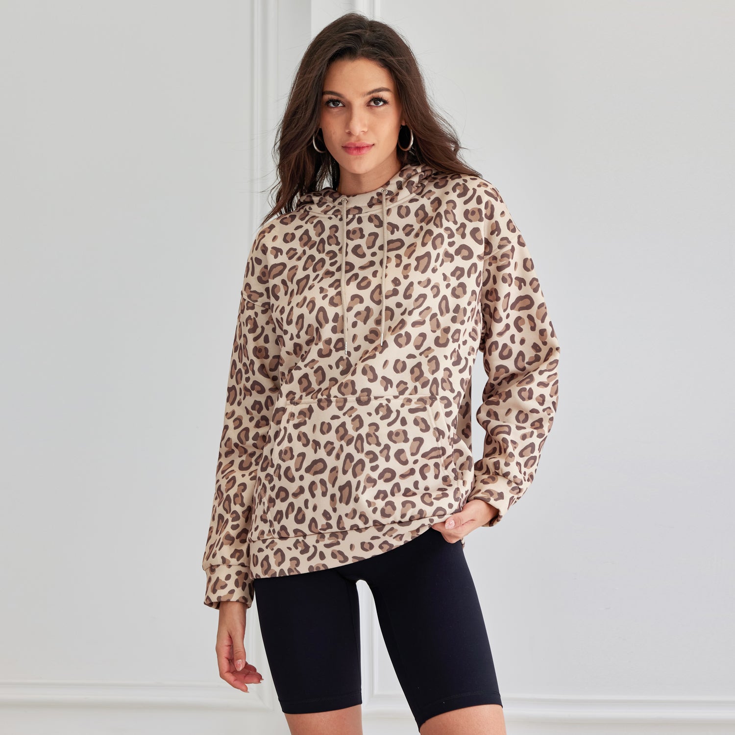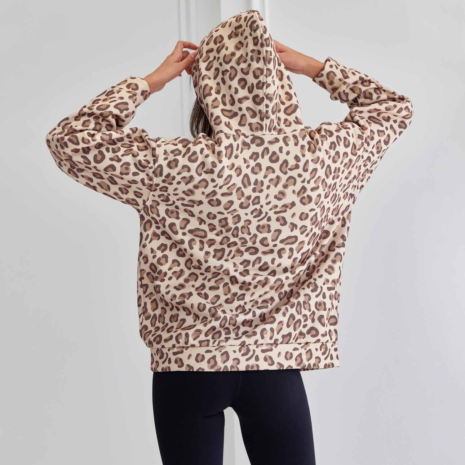 Leopard Print Hooded Oversized Comfort Sweatshirt with Pocket
