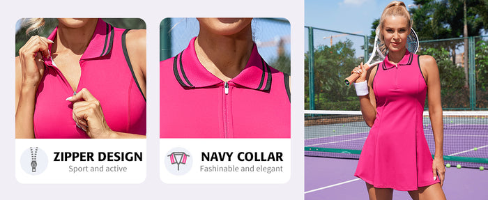 Embrace the timeless charm of classic tennis style with a slight A-line silhouette and color-tipped polo collar, this dress perfectly combines blend of classic tennis style and modern functionality. Stay cool and comfortable on the court during intense matches or workouts with our fully-perforated back panel that allows air to flow freely. Exercise athletic dress is practical for tennis, golf, pickleball, running, cycling, hiking, hanging out and daily wear. A best gift for tennis enthusiasts.