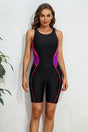 Women Boyleg Swimwear Racerback Athletic One Piece Black-purple Blocks Bathing Suits