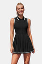 Women Tennis Polo Dresses Ribbed Half Zip Pleated Black Golf Workout Dress